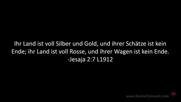 Ihr Land ist voll Silber und Gold, und ihrer Schätze ist kein Ende; ihr Land ist voll Rosse, und ihrer Wagen ist kein Ende. -Jesaja 2:7 L1912