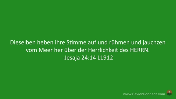 Dieselben heben ihre Stimme auf und rühmen und jauchzen vom Meer her über der Herrlichkeit des HERRN. -Jesaja 24:14 L1912