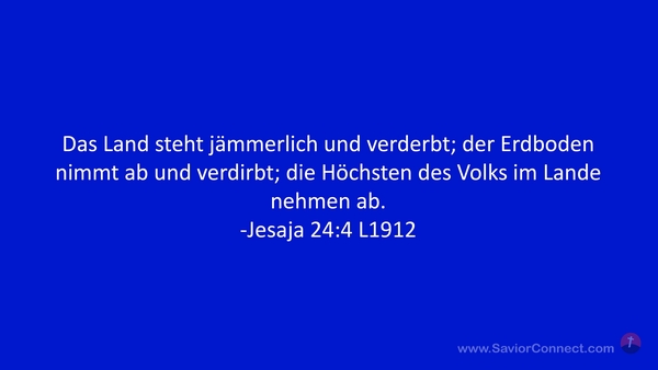 Das Land steht jämmerlich und verderbt; der Erdboden nimmt ab und verdirbt; die Höchsten des Volks im Lande nehmen ab. -Jesaja 24:4 L1912