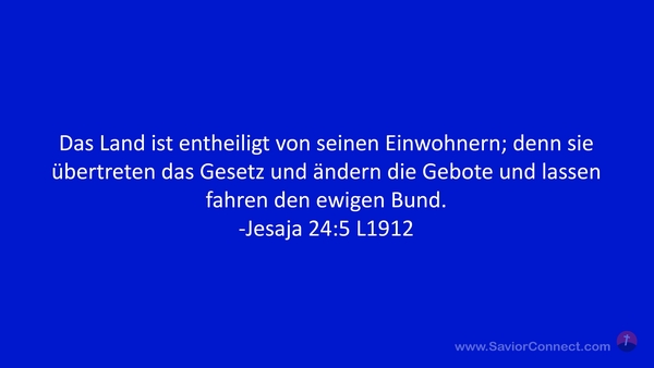 Das Land ist entheiligt von seinen Einwohnern; denn sie übertreten das Gesetz und ändern die Gebote und lassen fahren den ewigen Bund. -Jesaja 24:5 L1912