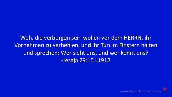 Weh, die verborgen sein wollen vor dem HERRN, ihr Vornehmen zu verhehlen, und ihr Tun im Finstern halten und sprechen: Wer sieht uns, und wer kennt uns? -Jesaja 29:15 L1912
