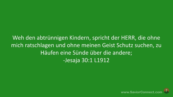 Weh den abtrünnigen Kindern, spricht der HERR, die ohne mich ratschlagen und ohne meinen Geist Schutz suchen, zu Häufen eine Sünde über die andere; -Jesaja 30:1 L1912