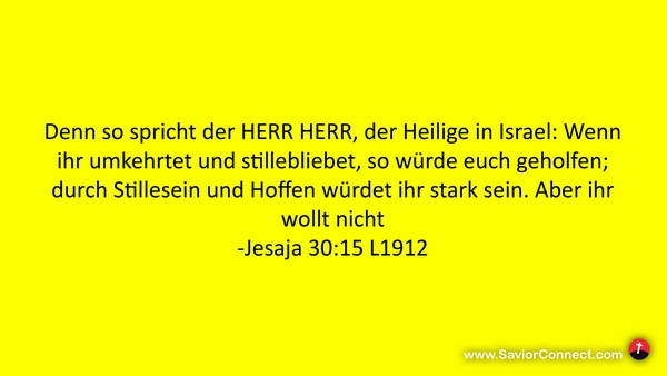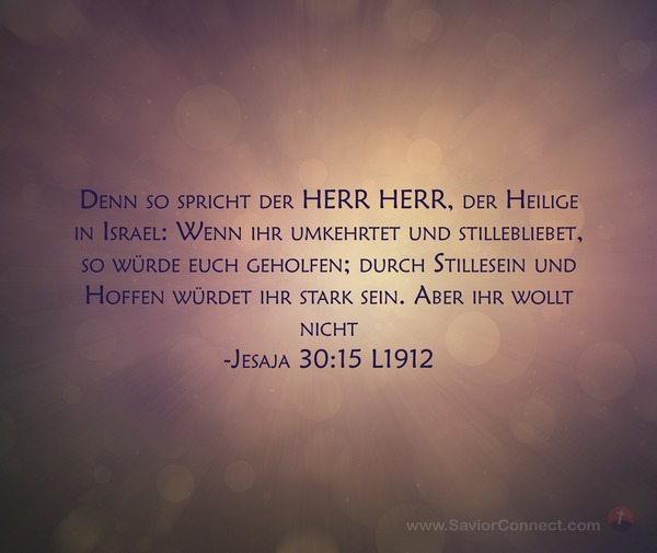 Denn so spricht der HERR HERR, der Heilige in Israel: Wenn ihr umkehrtet und stillebliebet, so würde euch geholfen; durch Stillesein und Hoffen würdet ihr stark sein. Aber ihr wollt nicht -Jesaja 30:15 L1912