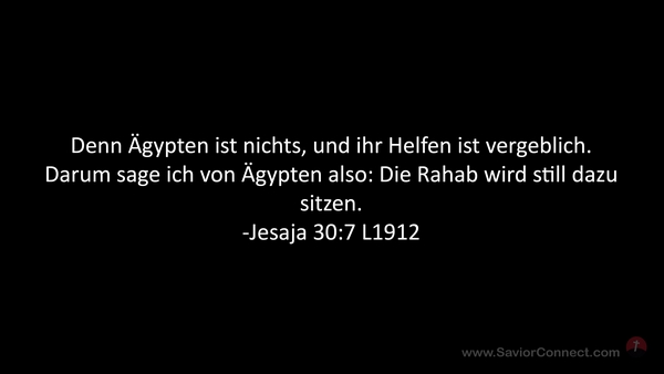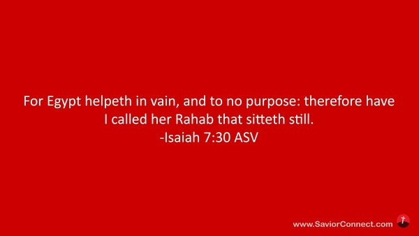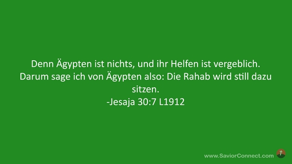 Denn Ägypten ist nichts, und ihr Helfen ist vergeblich. Darum sage ich von Ägypten also: Die Rahab wird still dazu sitzen. -Jesaja 30:7 L1912