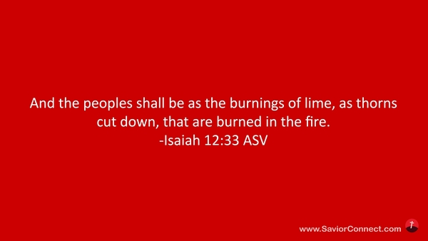 Und die Völker werden zu Kalk verbrannt werden, wie man abgehauene Dornen mit Feuer ansteckt. -Jesaja 33:12 L1912