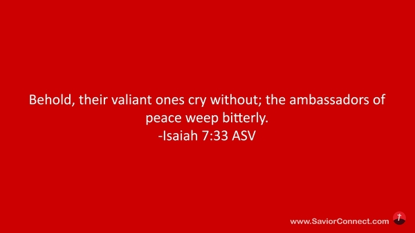 Siehe, ihre Helden schreien draußen, die Boten des Friedens weinen bitterlich. -Jesaja 33:7 L1912
