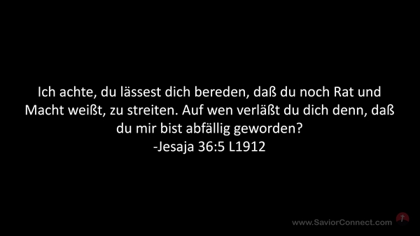 Ich achte, du lässest dich bereden, daß du noch Rat und Macht weißt, zu streiten. Auf wen verläßt du dich denn, daß du mir bist abfällig geworden? -Jesaja 36:5 L1912
