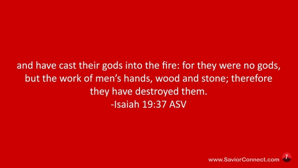 und haben ihre Götter ins Feuer geworfen; denn sie waren nicht Götter, sondern Werk von Menschenhänden, Holz und Stein. Die sind vertilgt. -Jesaja 37:19 L1912