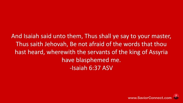 Jesaja aber sprach: So saget eurem Herrn: Der HERR spricht also: Fürchte dich nicht vor den Worten, die du gehört hast, mit welchen mich die Knechte des Königs von Assyrien geschmäht haben. -Jesaja 37:6 L1912