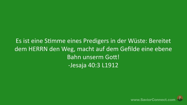 Es ist eine Stimme eines Predigers in der Wüste: Bereitet dem HERRN den Weg, macht auf dem Gefilde eine ebene Bahn unserm Gott! -Jesaja 40:3 L1912