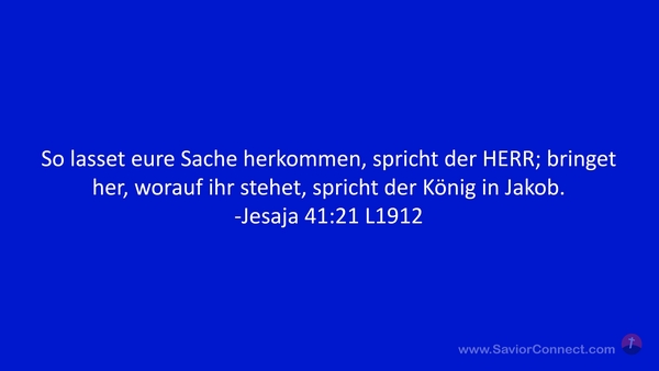 So lasset eure Sache herkommen, spricht der HERR; bringet her, worauf ihr stehet, spricht der König in Jakob. -Jesaja 41:21 L1912