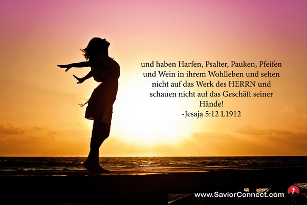 und haben Harfen, Psalter, Pauken, Pfeifen und Wein in ihrem Wohlleben und sehen nicht auf das Werk des HERRN und schauen nicht auf das Geschäft seiner Hände! -Jesaja 5:12 L1912