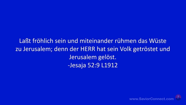 Laßt fröhlich sein und miteinander rühmen das Wüste zu Jerusalem; denn der HERR hat sein Volk getröstet und Jerusalem gelöst. -Jesaja 52:9 L1912