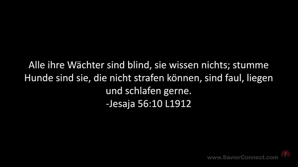 Alle ihre Wächter sind blind, sie wissen nichts; stumme Hunde sind sie, die nicht strafen können, sind faul, liegen und schlafen gerne. -Jesaja 56:10 L1912