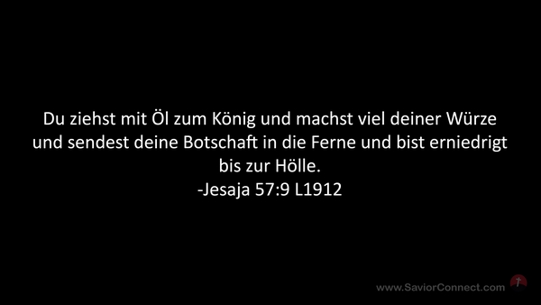 Du ziehst mit Öl zum König und machst viel deiner Würze und sendest deine Botschaft in die Ferne und bist erniedrigt bis zur Hölle. -Jesaja 57:9 L1912