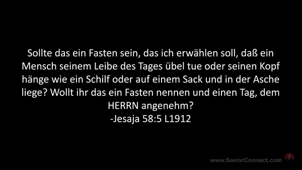 Sollte das ein Fasten sein, das ich erwählen soll, daß ein Mensch seinem Leibe des Tages übel tue oder seinen Kopf hänge wie ein Schilf oder auf einem Sack und in der Asche liege? Wollt ihr das ein Fasten nennen und einen Tag, dem HERRN angenehm? -Jesaja 58:5 L1912