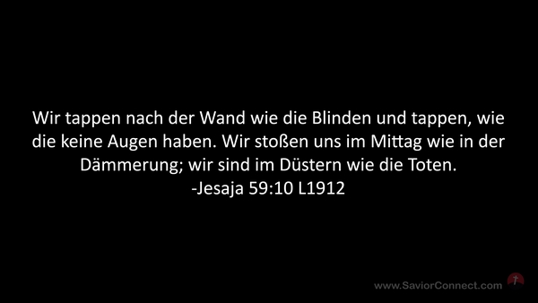 Wir tappen nach der Wand wie die Blinden und tappen, wie die keine Augen haben. Wir stoßen uns im Mittag wie in der Dämmerung; wir sind im Düstern wie die Toten. -Jesaja 59:10 L1912