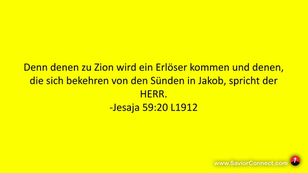 Denn denen zu Zion wird ein Erlöser kommen und denen, die sich bekehren von den Sünden in Jakob, spricht der HERR. -Jesaja 59:20 L1912