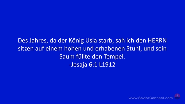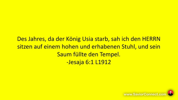 Des Jahres, da der König Usia starb, sah ich den HERRN sitzen auf einem hohen und erhabenen Stuhl, und sein Saum füllte den Tempel. -Jesaja 6:1 L1912