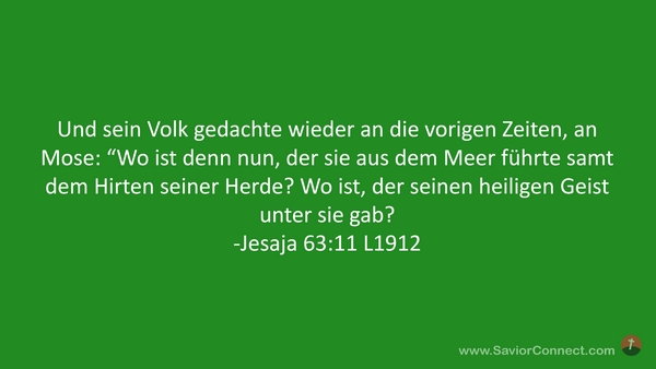 Und sein Volk gedachte wieder an die vorigen Zeiten, an Mose: “Wo ist denn nun, der sie aus dem Meer führte samt dem Hirten seiner Herde? Wo ist, der seinen heiligen Geist unter sie gab? -Jesaja 63:11 L1912