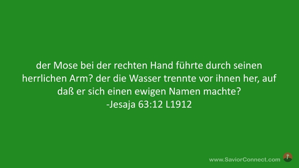 der Mose bei der rechten Hand führte durch seinen herrlichen Arm? der die Wasser trennte vor ihnen her, auf daß er sich einen ewigen Namen machte? -Jesaja 63:12 L1912