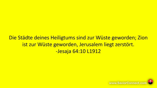 Die Städte deines Heiligtums sind zur Wüste geworden; Zion ist zur Wüste geworden, Jerusalem liegt zerstört. -Jesaja 64:10 L1912