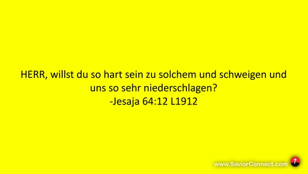 HERR, willst du so hart sein zu solchem und schweigen und uns so sehr niederschlagen? -Jesaja 64:12 L1912