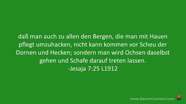 daß man auch zu allen den Bergen, die man mit Hauen pflegt umzuhacken, nicht kann kommen vor Scheu der Dornen und Hecken; sondern man wird Ochsen daselbst gehen und Schafe darauf treten lassen. -Jesaja 7:25 L1912