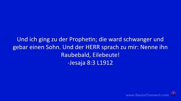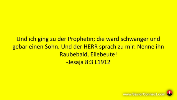 Und ich ging zu der Prophetin; die ward schwanger und gebar einen Sohn. Und der HERR sprach zu mir: Nenne ihn Raubebald, Eilebeute! -Jesaja 8:3 L1912