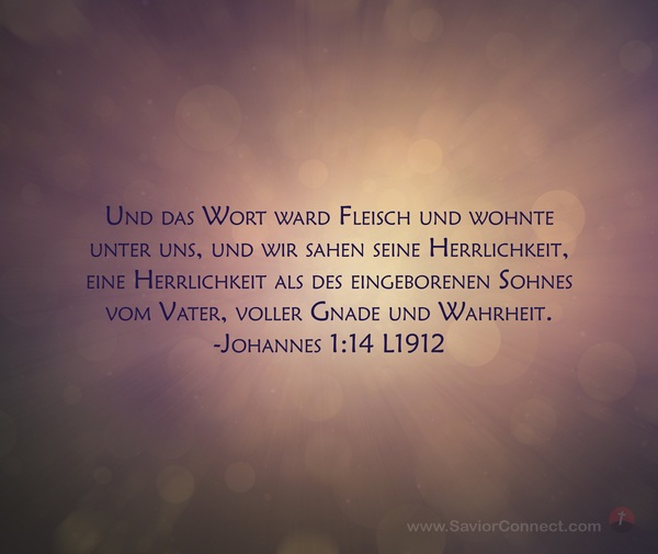Und das Wort ward Fleisch und wohnte unter uns, und wir sahen seine Herrlichkeit, eine Herrlichkeit als des eingeborenen Sohnes vom Vater, voller Gnade und Wahrheit. -Johannes 1:14 L1912
