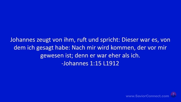 Johannes zeugt von ihm, ruft und spricht: Dieser war es, von dem ich gesagt habe: Nach mir wird kommen, der vor mir gewesen ist; denn er war eher als ich. -Johannes 1:15 L1912