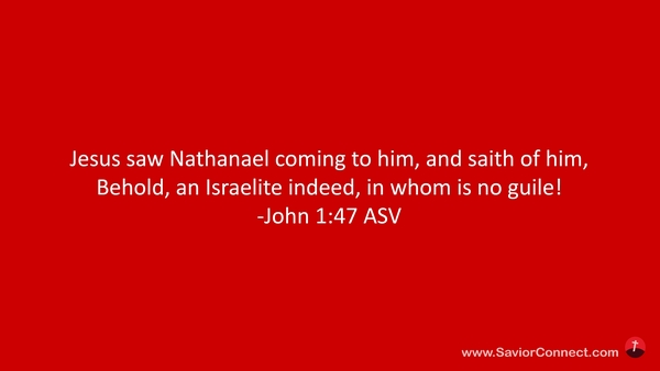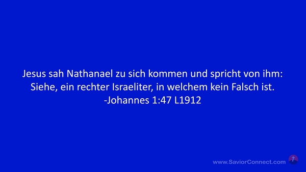 Jesus sah Nathanael zu sich kommen und spricht von ihm: Siehe, ein rechter Israeliter, in welchem kein Falsch ist. -Johannes 1:47 L1912