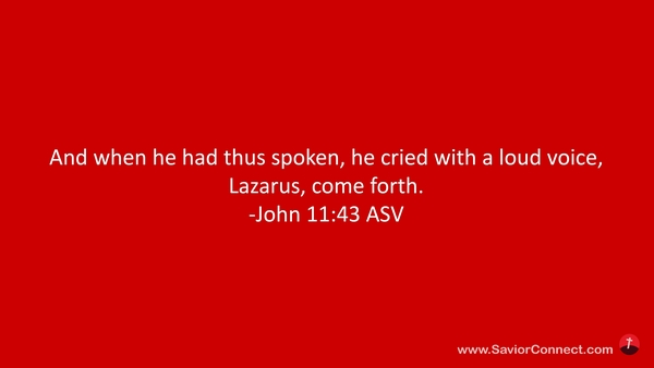 Da er das gesagt hatte, rief er mit lauter Stimme: Lazarus, komm heraus! -Johannes 11:43 L1912