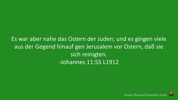 Es war aber nahe das Ostern der Juden; und es gingen viele aus der Gegend hinauf gen Jerusalem vor Ostern, daß sie sich reinigten. -Johannes 11:55 L1912