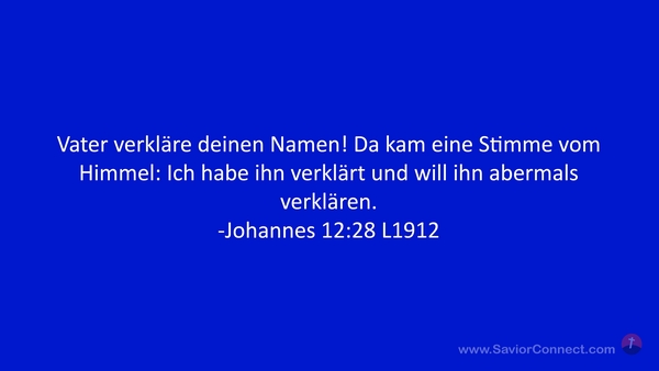 Vater verkläre deinen Namen! Da kam eine Stimme vom Himmel: Ich habe ihn verklärt und will ihn abermals verklären. -Johannes 12:28 L1912