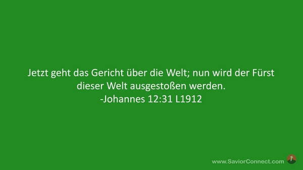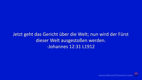 Jetzt geht das Gericht über die Welt; nun wird der Fürst dieser Welt ausgestoßen werden. -Johannes 12:31 L1912