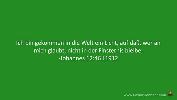 Ich bin gekommen in die Welt ein Licht, auf daß, wer an mich glaubt, nicht in der Finsternis bleibe. -Johannes 12:46 L1912