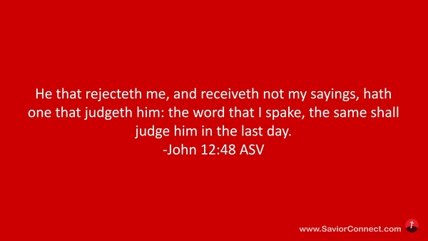 Wer mich verachtet und nimmt meine Worte nicht auf, der hat schon seinen Richter; das Wort, welches ich geredet habe, das wird ihn richten am Jüngsten Tage. -Johannes 12:48 L1912