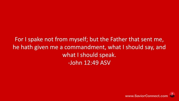Denn ich habe nicht von mir selber geredet; sondern der Vater, der mich gesandt hat, der hat mir ein Gebot gegeben, was ich tun und reden soll. -Johannes 12:49 L1912