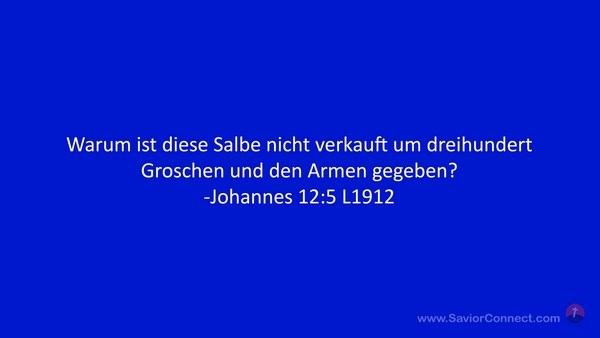 Warum ist diese Salbe nicht verkauft um dreihundert Groschen und den Armen gegeben? -Johannes 12:5 L1912