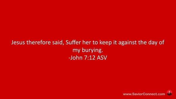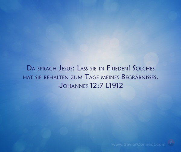 Da sprach Jesus: Laß sie in Frieden! Solches hat sie behalten zum Tage meines Begräbnisses. -Johannes 12:7 L1912