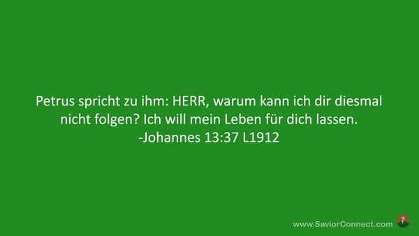 Petrus spricht zu ihm: HERR, warum kann ich dir diesmal nicht folgen? Ich will mein Leben für dich lassen. -Johannes 13:37 L1912
