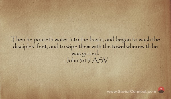 Darnach goß er Wasser in ein Becken, hob an, den Jüngern die Füße zu waschen, und trocknete sie mit dem Schurz, damit er umgürtet war. -Johannes 13:5 L1912