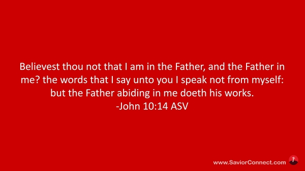 Glaubst du nicht, daß ich im Vater bin und der Vater in mir? Die Worte, die ich zu euch rede, die rede ich nicht von mir selbst. Der Vater aber, der in mir wohnt, der tut die Werke. -Johannes 14:10 L1912