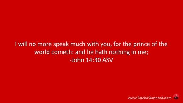 Ich werde nicht mehr viel mit euch reden; denn es kommt der Fürst dieser Welt, und hat nichts an mir. -Johannes 14:30 L1912