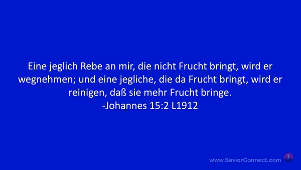 Eine jeglich Rebe an mir, die nicht Frucht bringt, wird er wegnehmen; und eine jegliche, die da Frucht bringt, wird er reinigen, daß sie mehr Frucht bringe. -Johannes 15:2 L1912