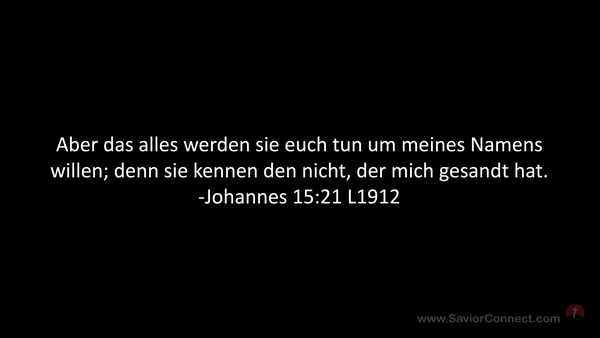 Aber das alles werden sie euch tun um meines Namens willen; denn sie kennen den nicht, der mich gesandt hat. -Johannes 15:21 L1912