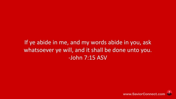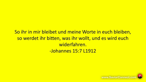 So ihr in mir bleibet und meine Worte in euch bleiben, so werdet ihr bitten, was ihr wollt, und es wird euch widerfahren. -Johannes 15:7 L1912