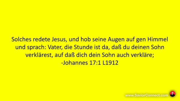 Solches redete Jesus, und hob seine Augen auf gen Himmel und sprach: Vater, die Stunde ist da, daß du deinen Sohn verklärest, auf daß dich dein Sohn auch verkläre; -Johannes 17:1 L1912