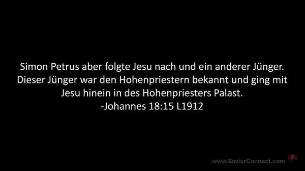 Simon Petrus aber folgte Jesu nach und ein anderer Jünger. Dieser Jünger war den Hohenpriestern bekannt und ging mit Jesu hinein in des Hohenpriesters Palast. -Johannes 18:15 L1912